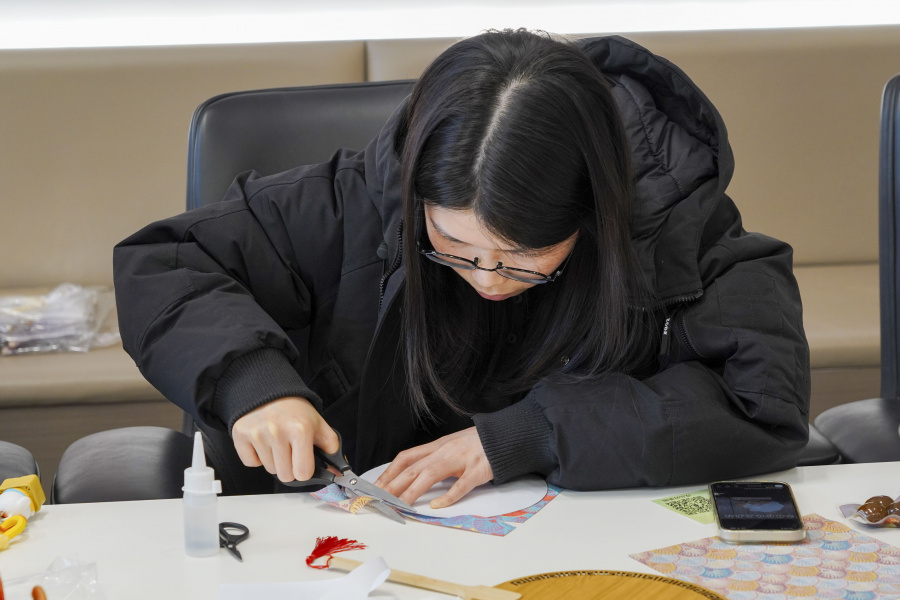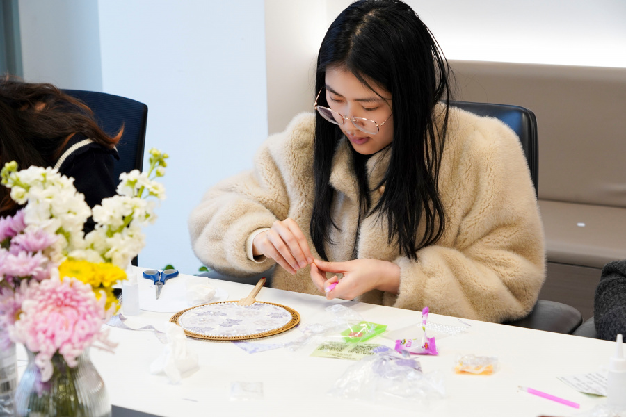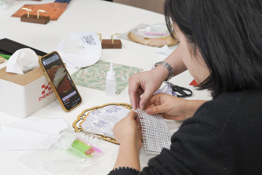 拈一缕锦丝,缀几颗明珠,大家在穿针引线间,感受传统工艺的温度,也享受这份难得的专注与静谧。