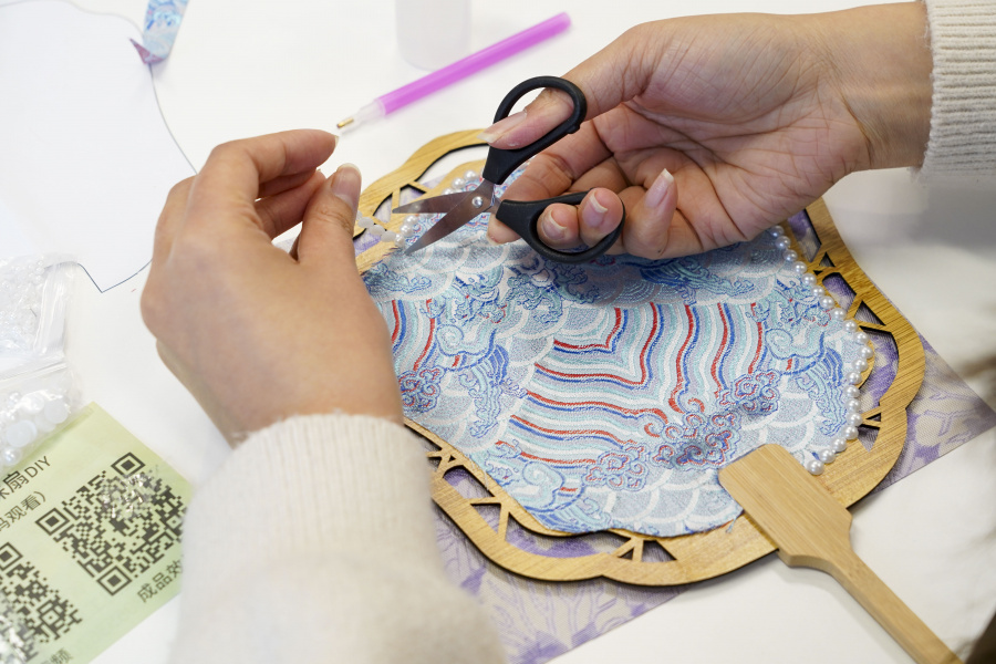 当千年宋锦邂逅温润珍珠,会碰撞出怎样的东方美学?辰鑫会议室化身「非遗手作工坊」,为辰鑫女神们筹备一场宋锦珍珠扇DIY体验。